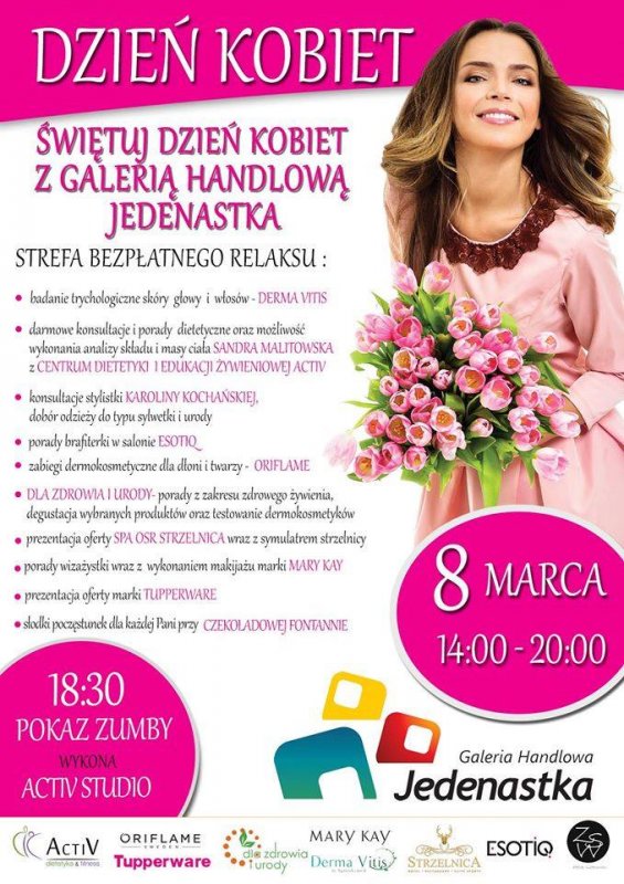 Dzień Kobiet to szczególny dzień dla wszystkich Pań, dlatego też przygotowaliśmy dla naszych Klientek wiele atrakcji takich jak kosultacje dietetyczne, konsultacje stylistki, darmowa pielęgnacja skóry dłoni i twarzy, badanie trychologiczne skóry głowy i włosów, porady brafiterki, konsultacje z zakresu zdrowego żywienia, porady wizażystki wraz z wykonaniem makijażu. Na wszystkie Pań czekały takżę konkursy, w których można było wygrać zestawy kosmetyków oraz pobyt w SPA.