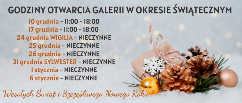 GODZINY OTWARCIA GALERII W OKRESIE ŚWIĄTECZNYM