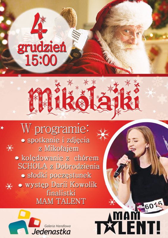 Już 4 grudnia w godzinach 15.00-18.00 Galeria Handlowa 11-stka zaprasza do wspólnego spędzenia Mikołajek.